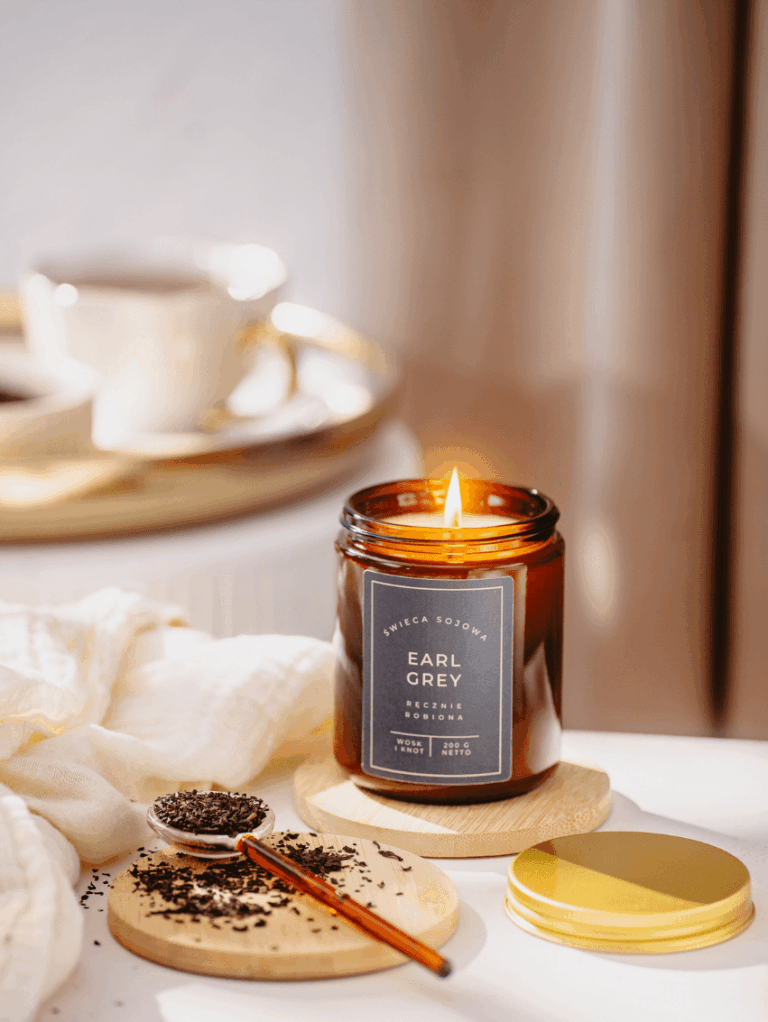 Świeca Sojowa Earl Grey to idealna propozycja dla miłośników herbaty i subtelnych, ale wyrafinowanych zapachów. Idealna do salonu lub biura, gdzie tworzy atmosferę elegancji i relaksu.”