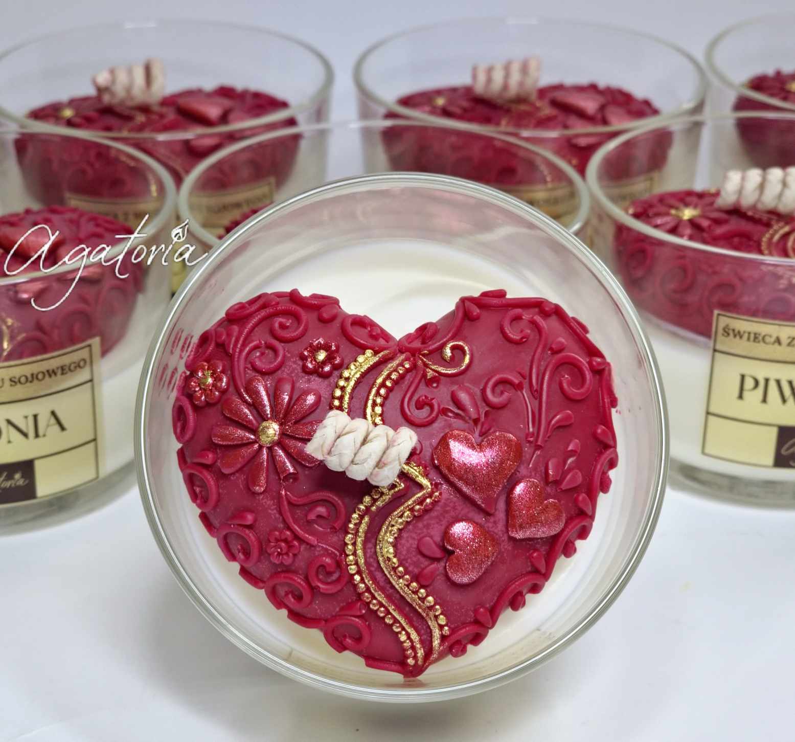 Szukasz wyjątkowego prezentu ? Nasza ręcznie robiona świeca sojowa „Piwonia” – SERCE to doskonały wybór!