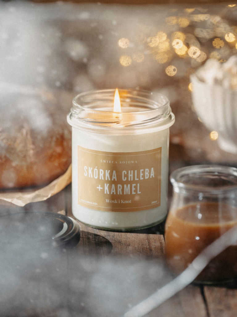 Świeca Sojowa Skórka Chleba i Karmel – to ciepła, przytulna esencja domowego ciepła, łącząca w sobie głębokie i satysfakcjonujące aromaty. Główną nutę stanowi spieczona skórka chleba, która przynosi wspomnienie świeżo upieczonego, chrupiącego chleba, wydobywając uczucie domowego komfortu. Palony karmel dodaje bogatego, intensywnego akcentu, przypominającego o słodkich chwilach przy kuchennym stole. Słodka wanilia i pieczone ciastko wnoszą do tej kompozycji delikatność i ciepło, tworząc atmosferę przytulnej kuchni. Cukier klonowy, z jego unikatową i rozgrzewającą słodyczą, dopełnia całość, tworząc zapach, który jest zarówno pocieszający, jak i zapraszający do wspólnego spędzania czasu. Główne nuty zapachowe: spieczona skórka chleba, palony karmel, słodka wanilia, pieczone ciastko, cukier klonowy. DUŻA POJEMNOŚĆ – 300 ML