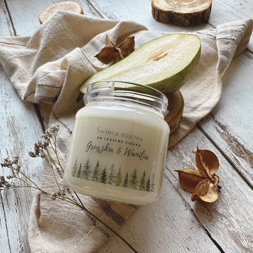 Świeca sojowa – Wanilia i Gruszka to aromatyczna dekoracja i codzienny rytuał w jednym. Jej ciepły, słodki zapach wprowadza harmonię i odprężenie, a naturalny skład i ręczne wykonanie czynią ją dobrym wyborem dla osób świadomie dbających o środowisko.